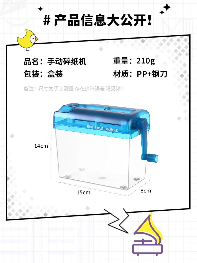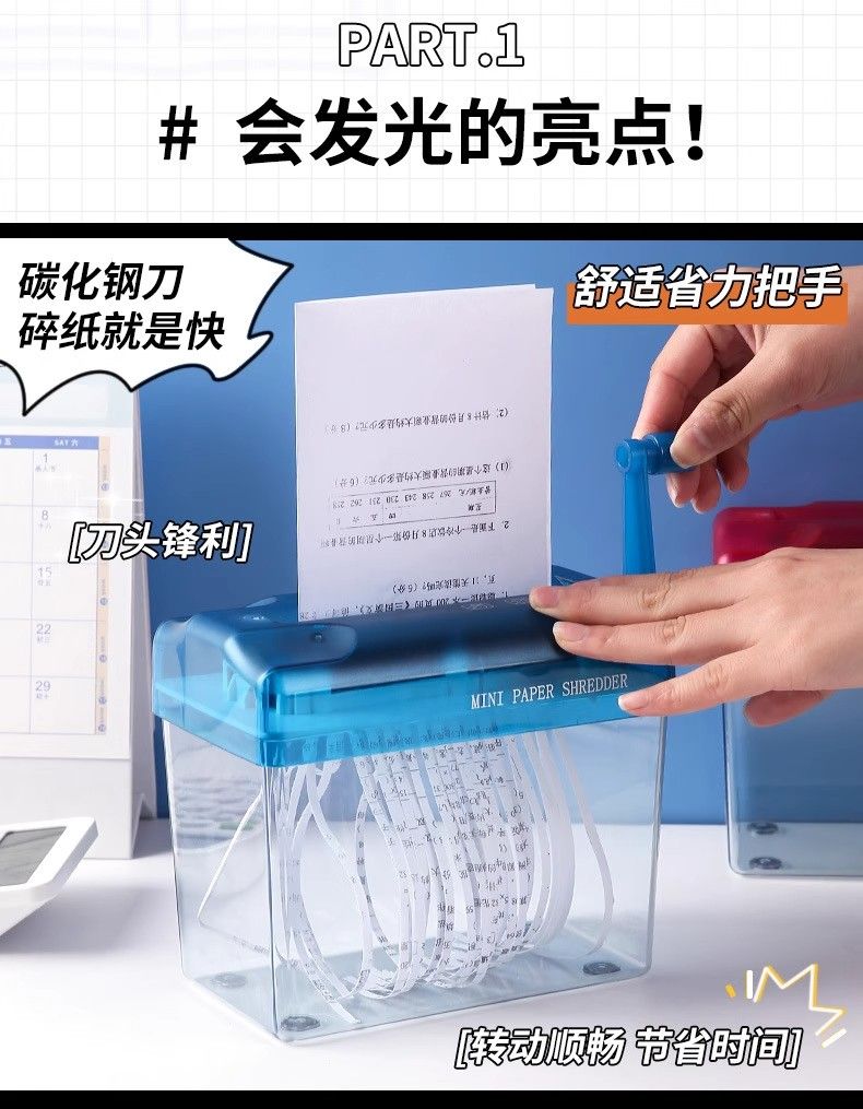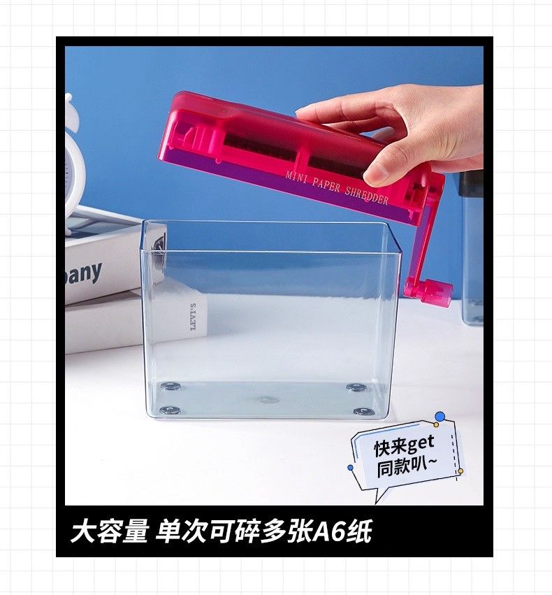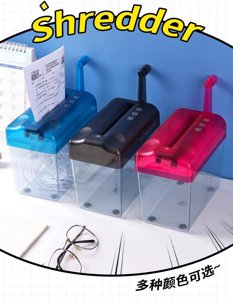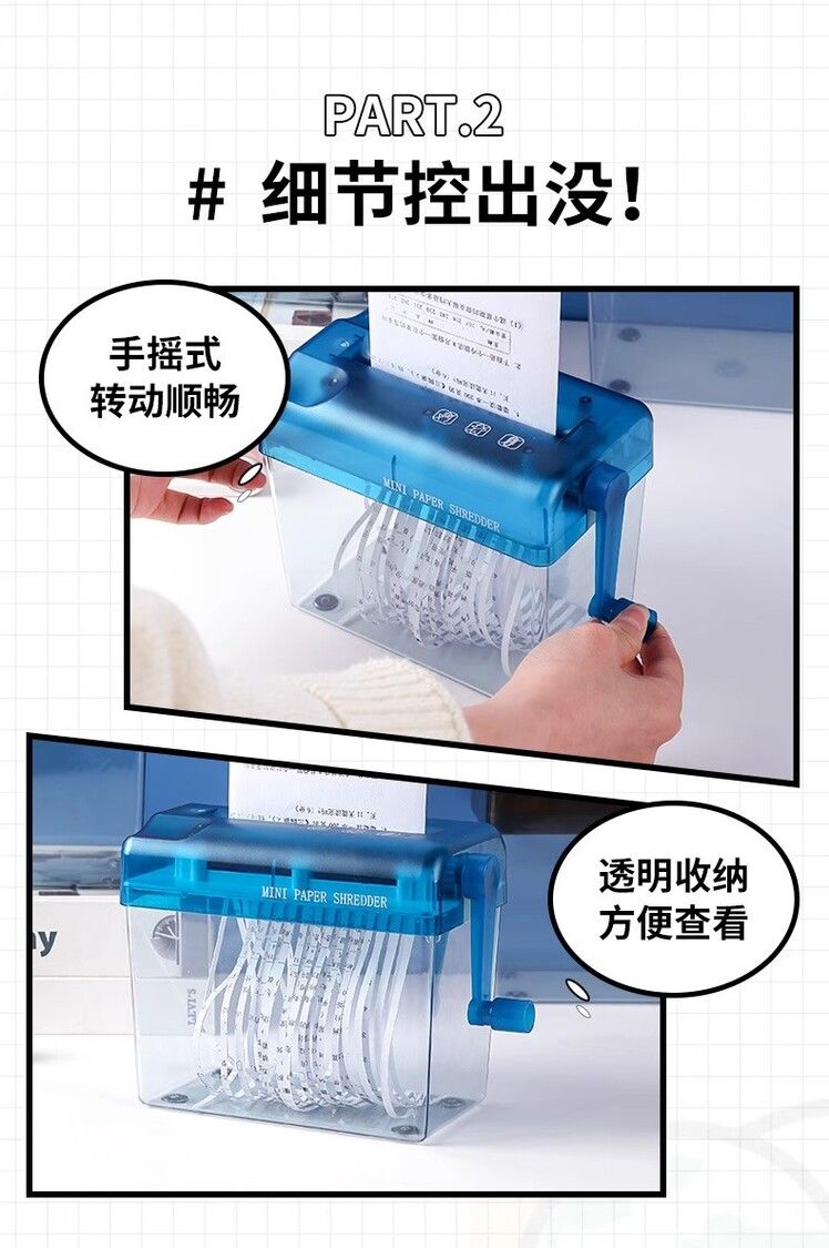 手搖碎紙機小型條狀碎紙高級保密辦公檔辦公桌面便攜迷你手動碎紙機A6小型家用靜音手搖紙張A4粉碎機