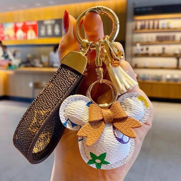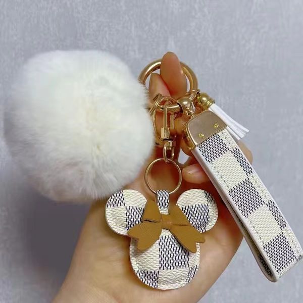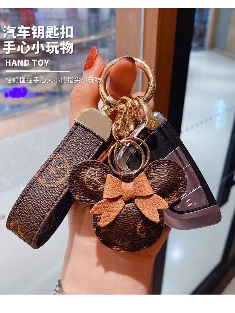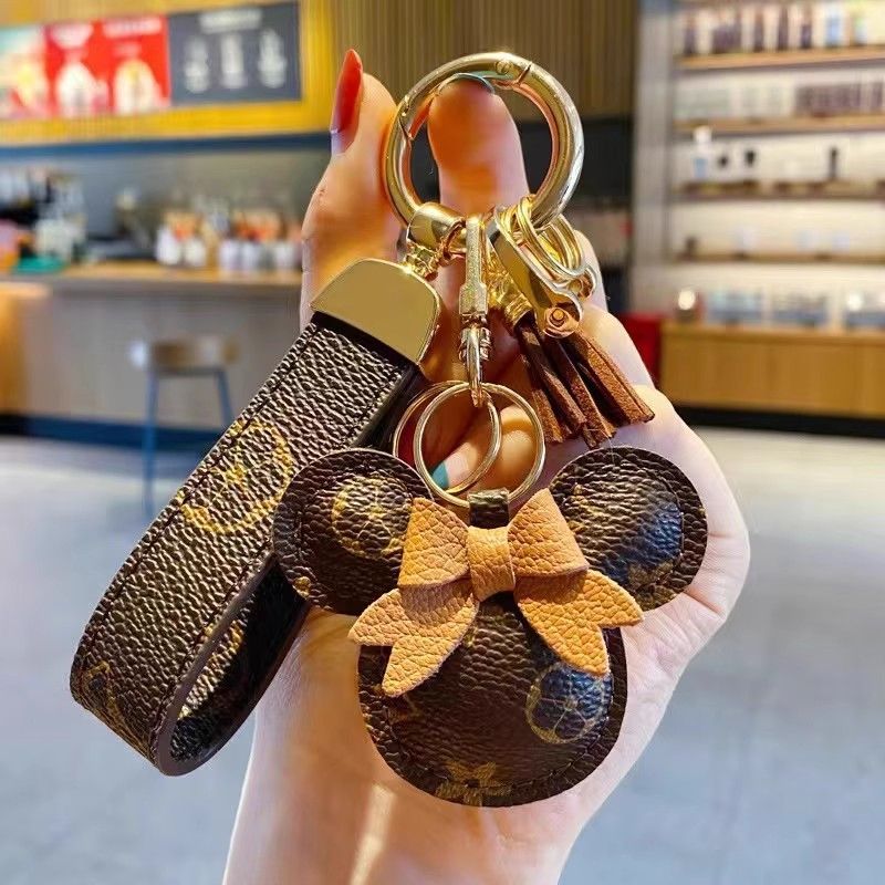 迪士尼米奇鑰匙扣老花皮革獺兔毛球卡通毛絨可愛精緻女包汽車掛件