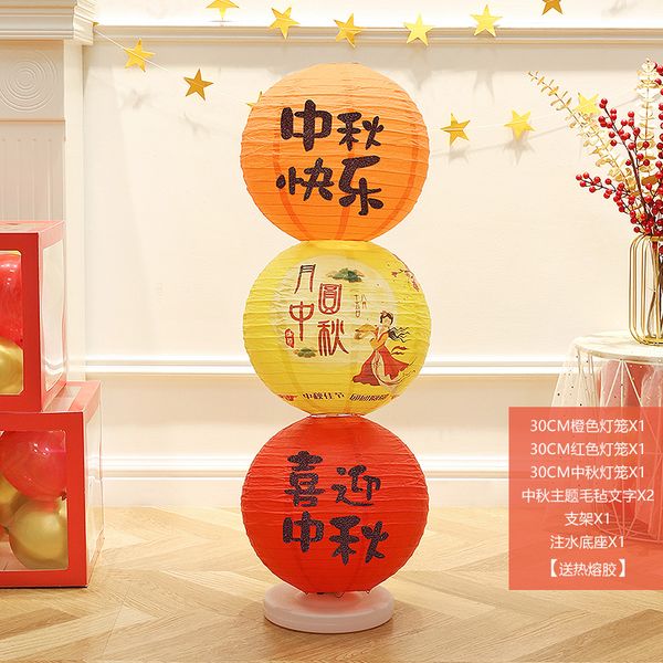 中秋節場景布置發光紙燈籠立柱落地擺件珠寶店店鋪活動道具裝飾品