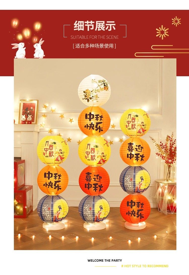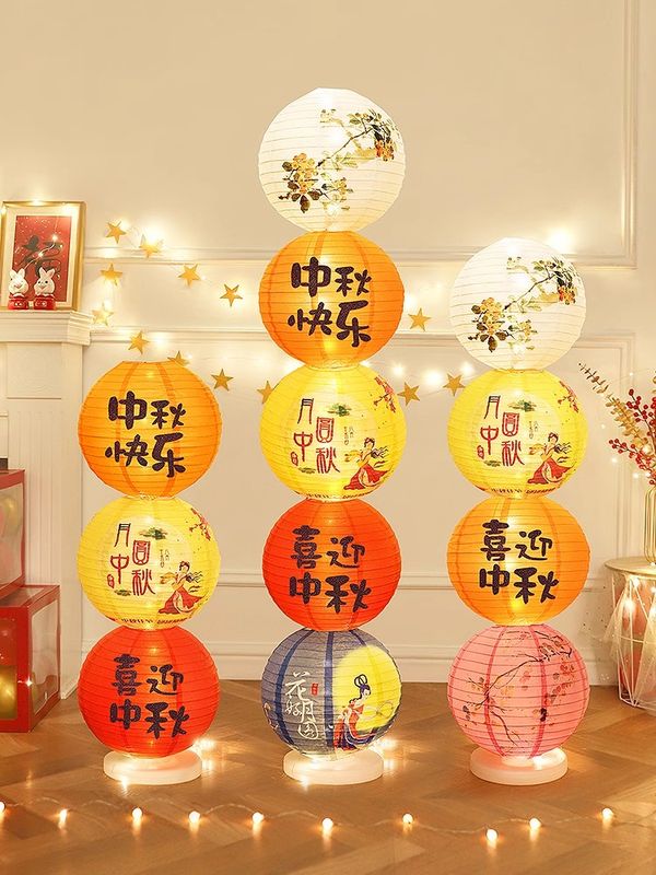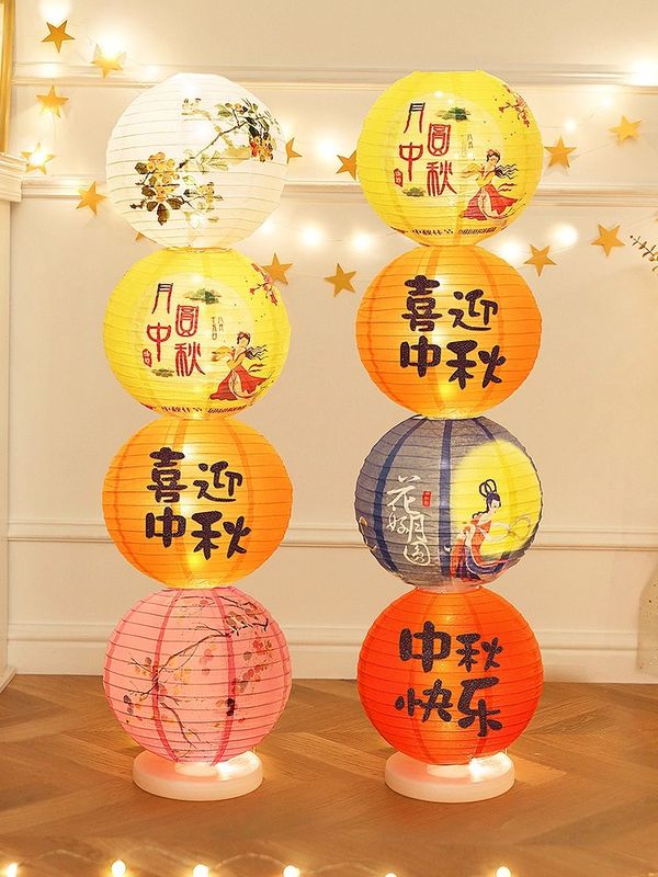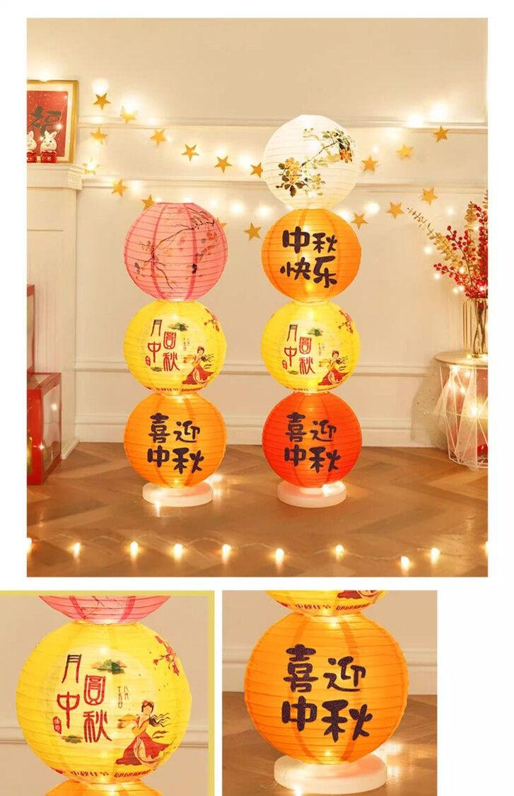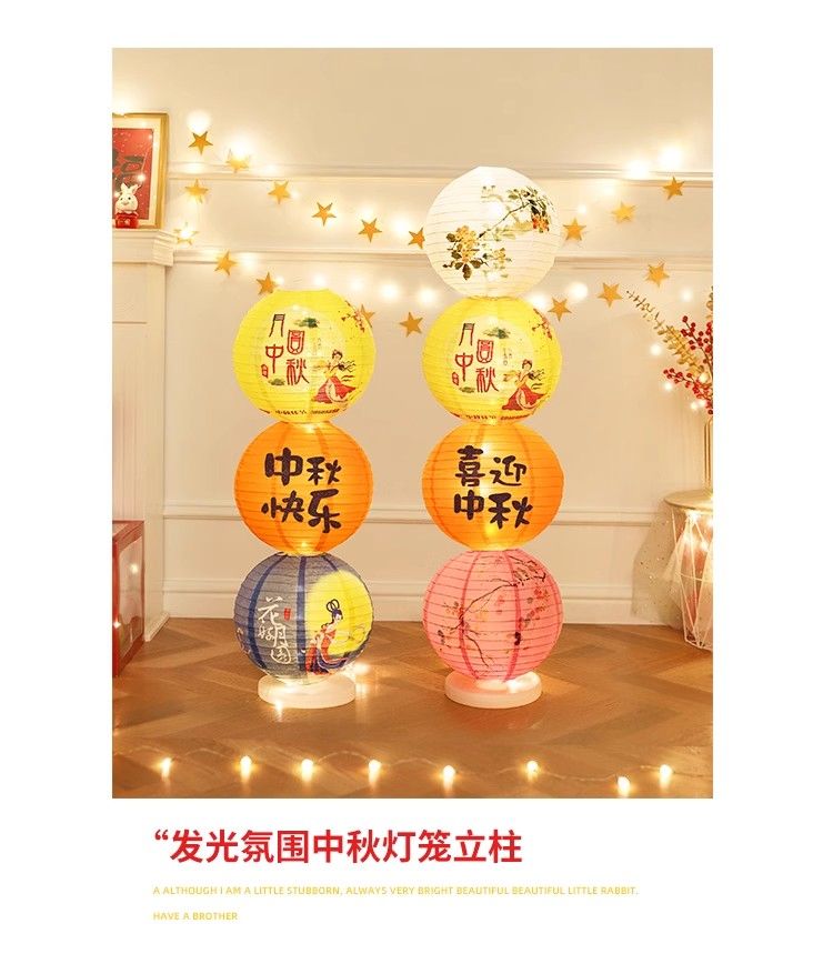 中秋節場景布置發光紙燈籠立柱落地擺件珠寶店店鋪活動道具裝飾品