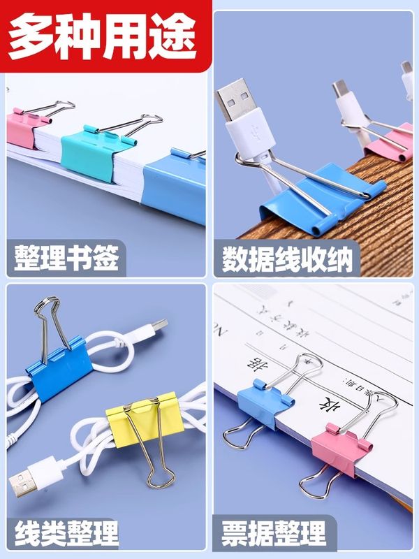 得力長尾夾燕尾夾夾子辦公文具大號19mm 25mm彩色金屬文件夾子票夾多功能試卷夾書夾子鳳尾夾辦公用品