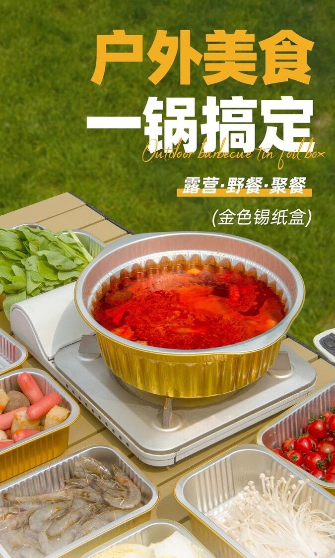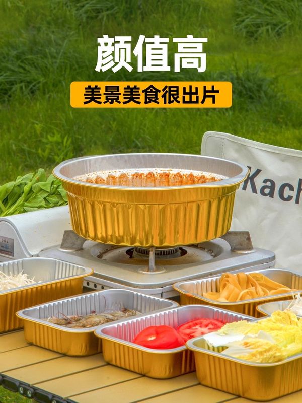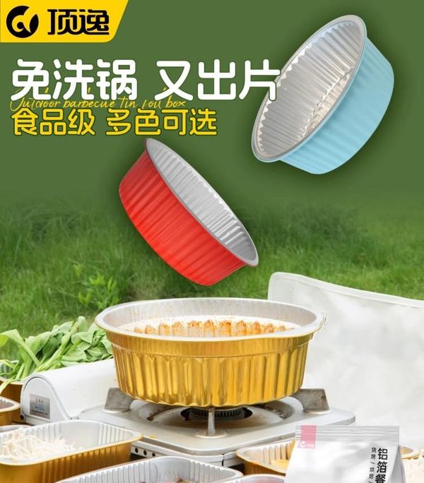 戶外錫紙鍋一次性火鍋鍋具套裝卡式爐專用錫紙盒露營燒烤爐具野餐