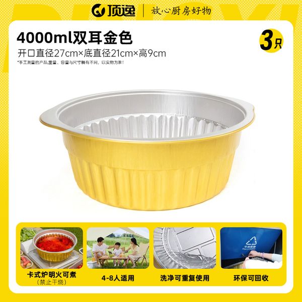金色4000ml雙耳鍋帶PP蓋3套+碗筷10套