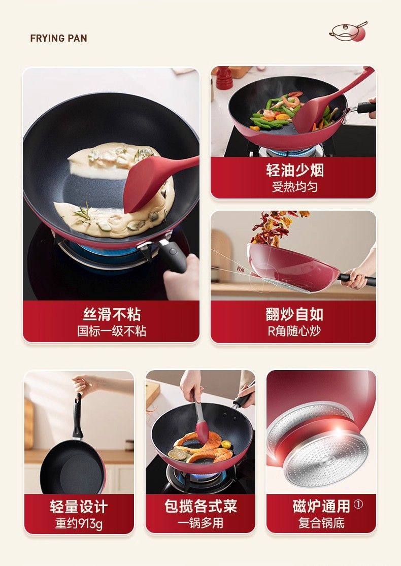 蘇泊爾不粘鍋家用炒菜鍋輕量設計平底鍋電磁爐燃氣灶通用