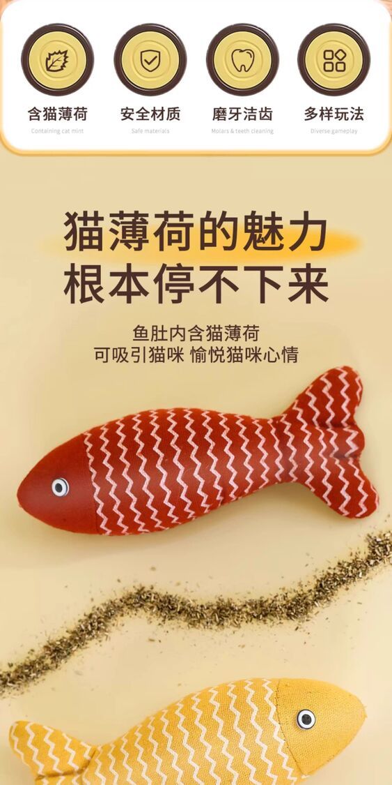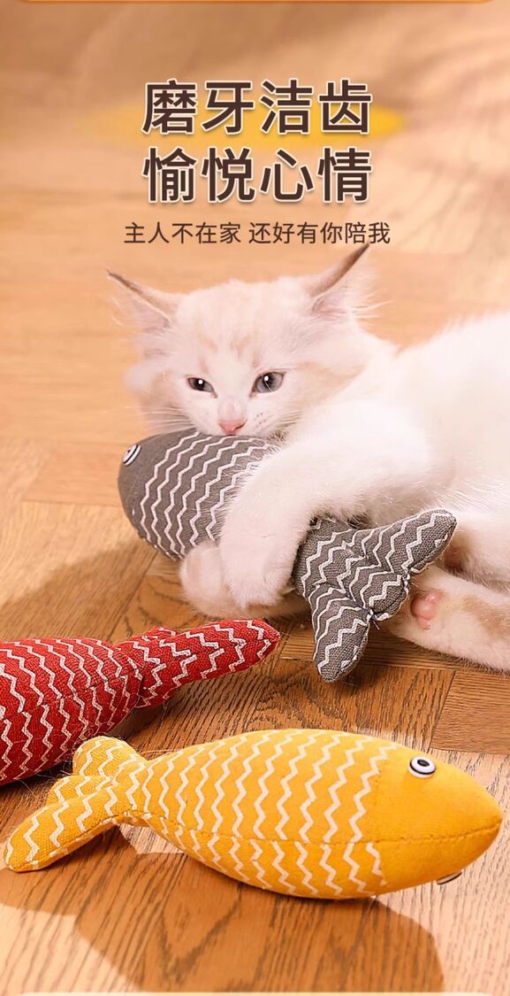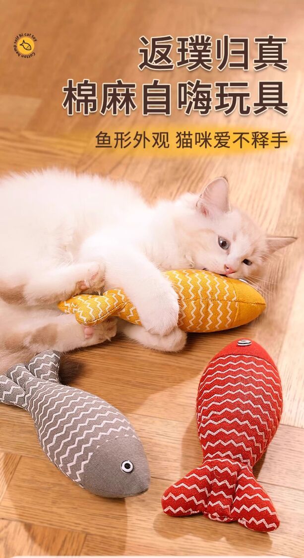 貓玩具自嗨解悶貓薄荷仿真魚幼貓貓咪逗貓棒小貓磨牙寵物貓貓用品-紅色