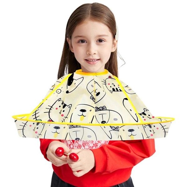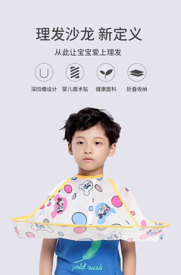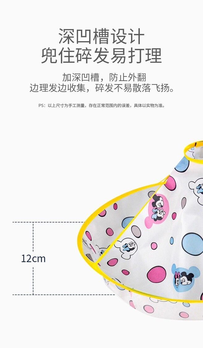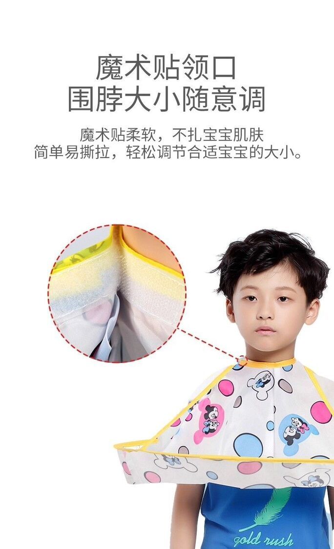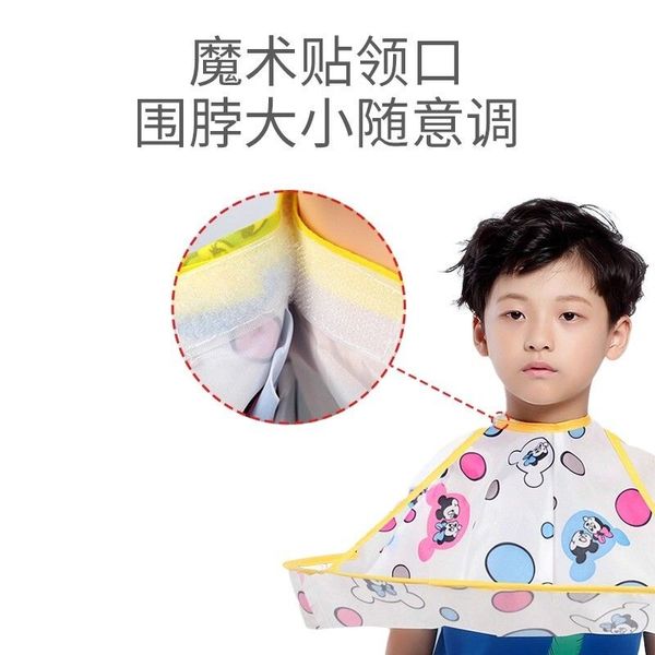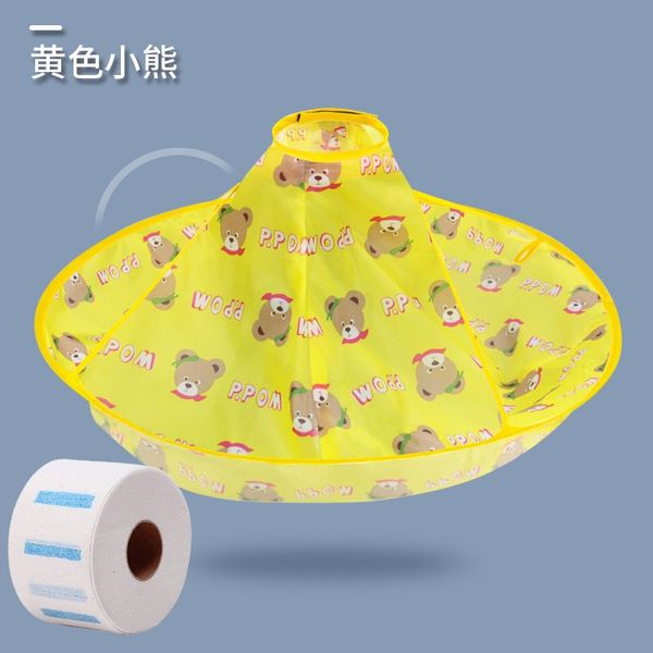 兒童理髮圍布不沾髮專用披肩寶寶剪髮神器圍兜斗篷嬰兒剃頭髮罩衣-黃色小熊+圍脖紙
