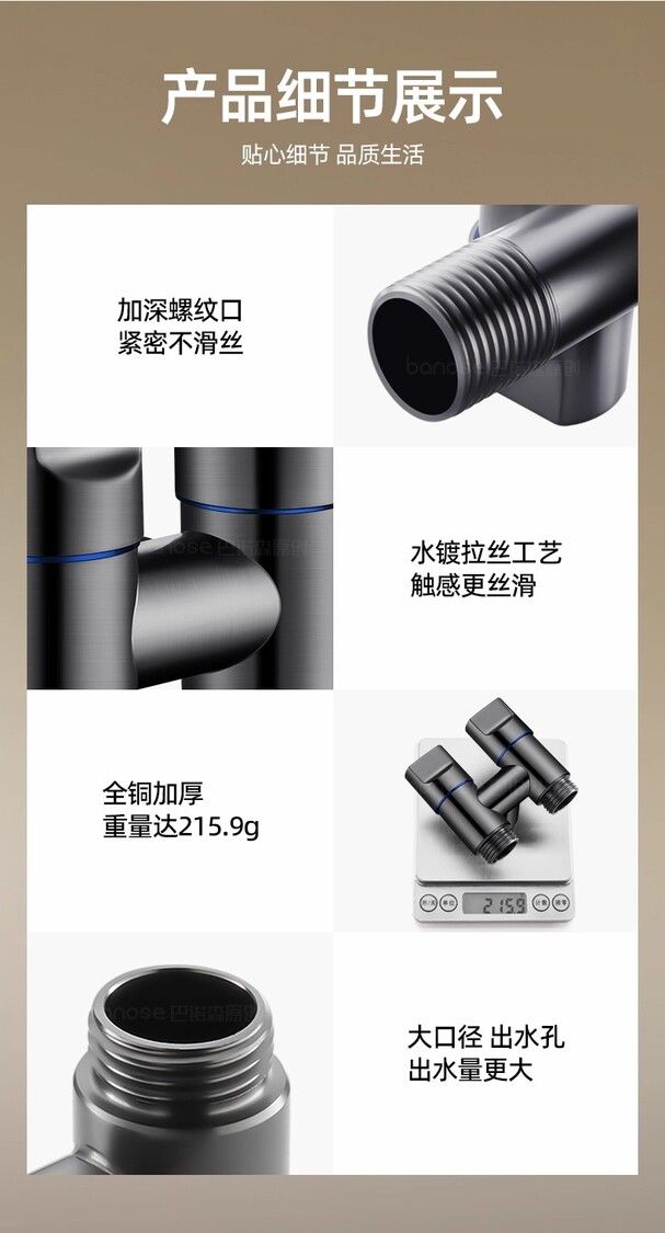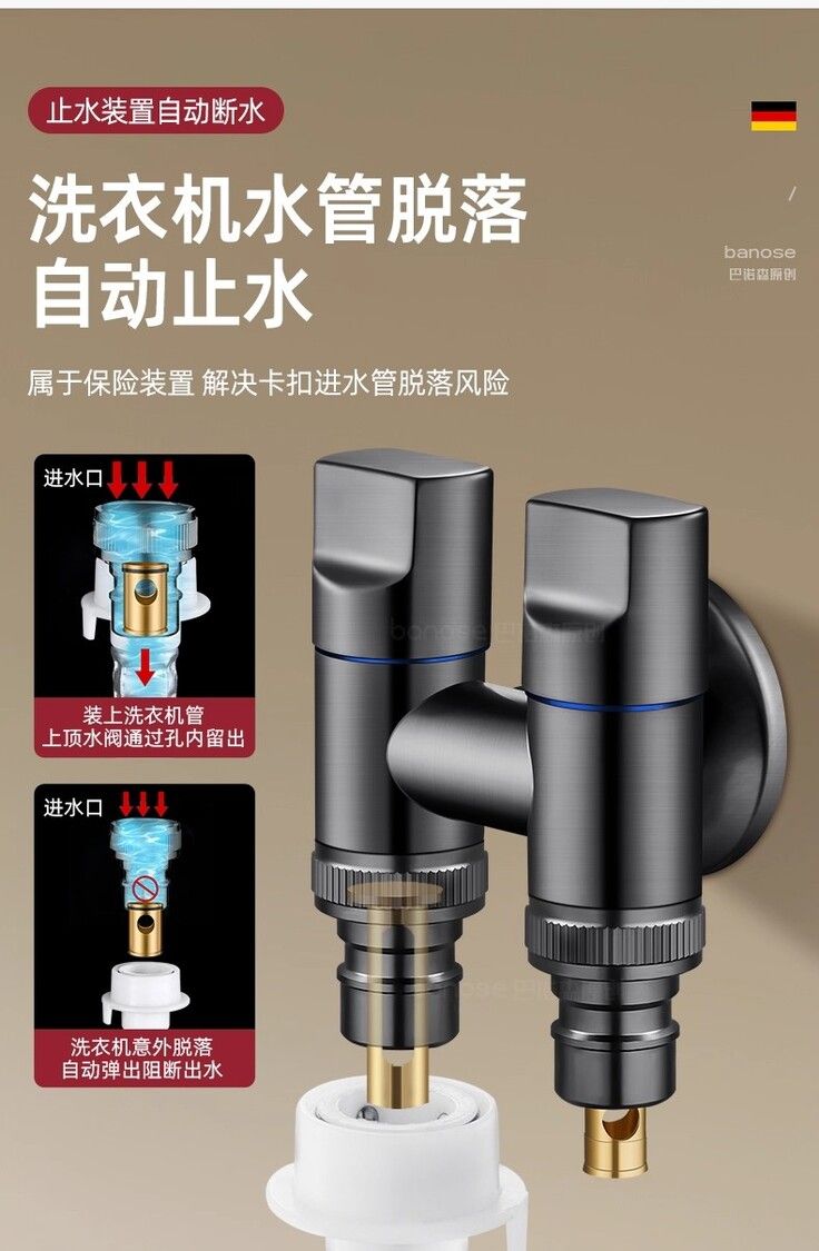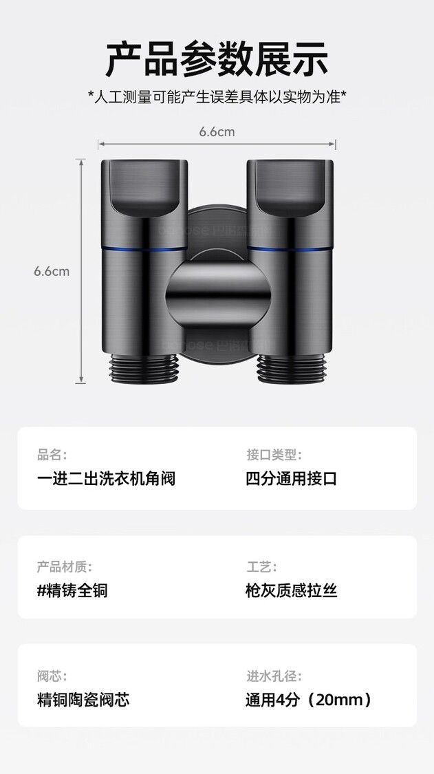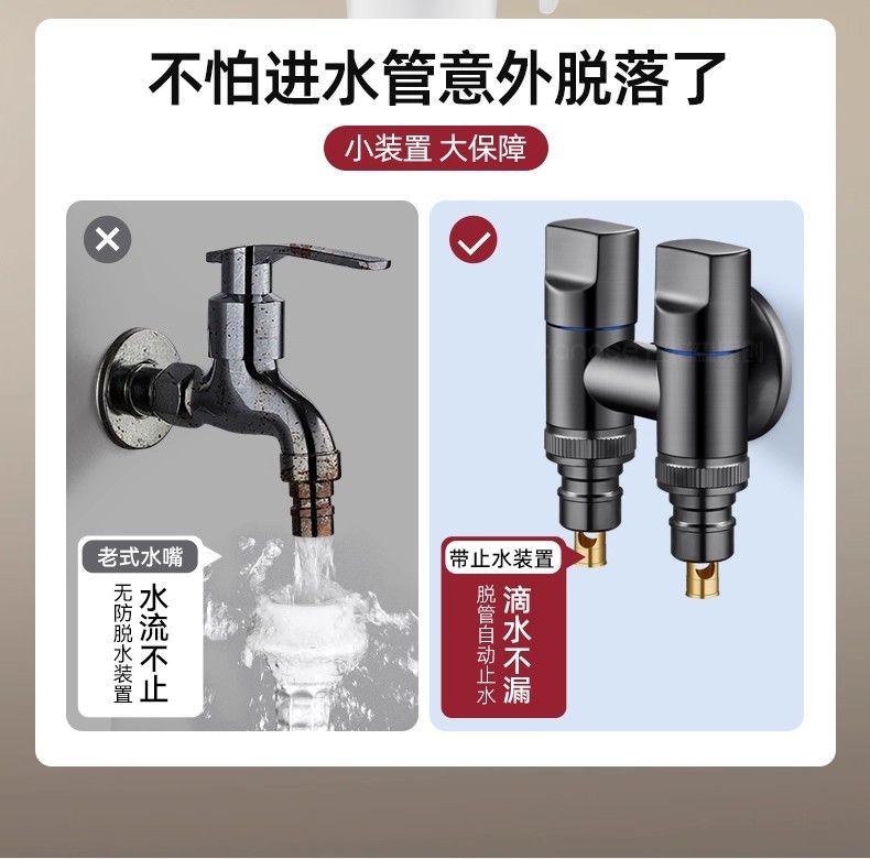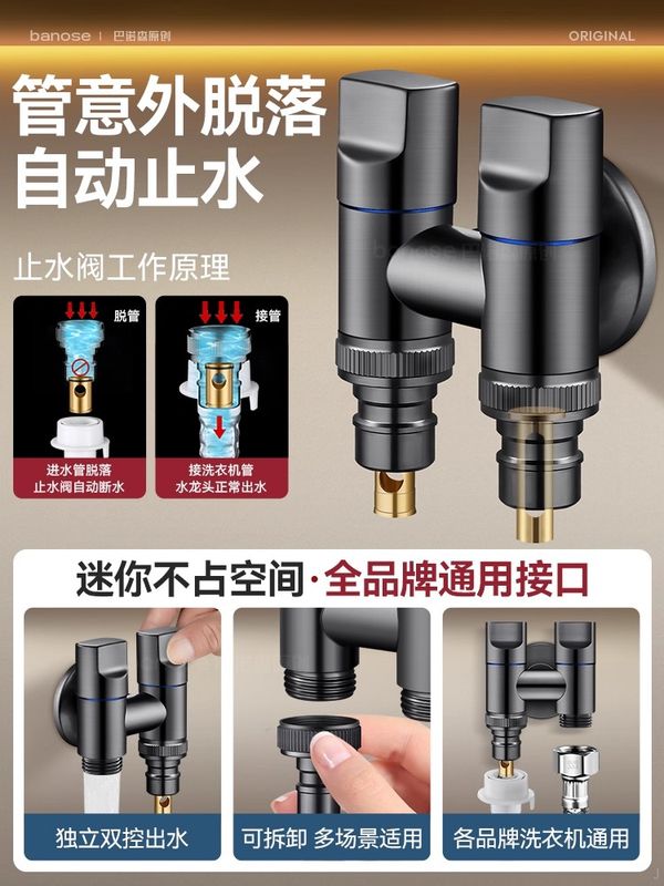 款式:【精銅槍灰】2個4分自動止水·接2臺洗衣機