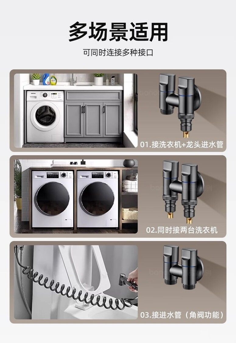 款式:【精銅槍灰】接1臺洗衣機(帶止水嘴)+4分螺紋