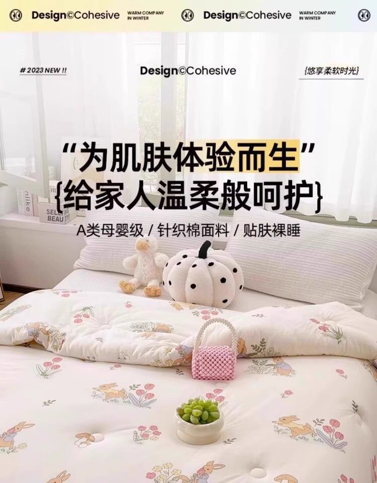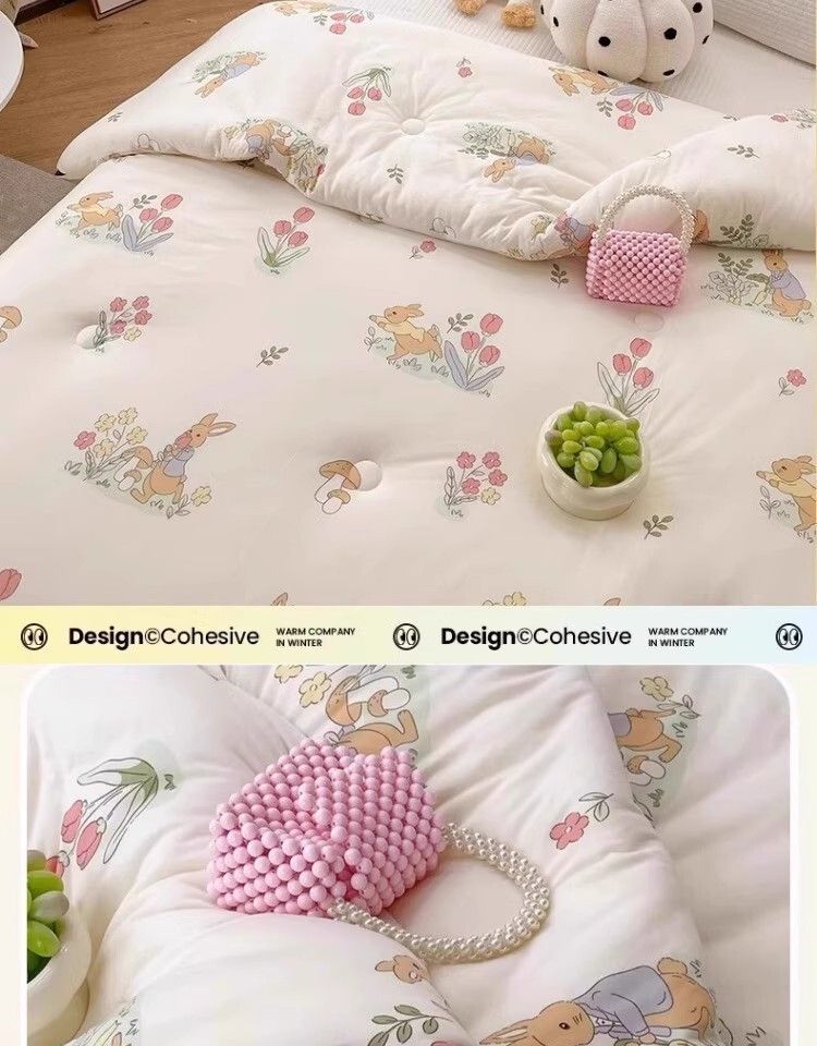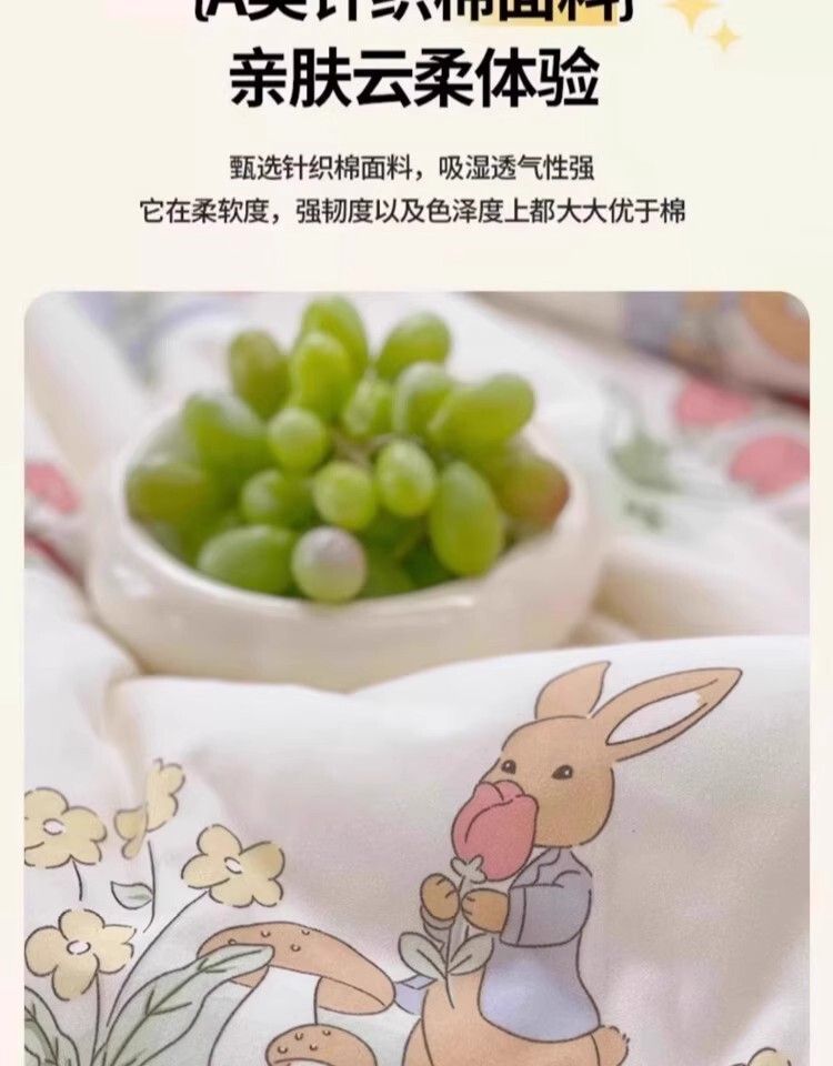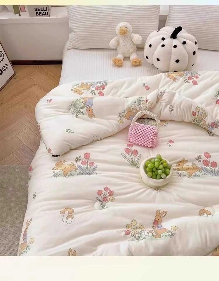 150*200cm【A類針織棉大豆春秋被/約3.3斤】;顏色分類:花叢兔【A類裸睡級超柔 可機洗水洗】