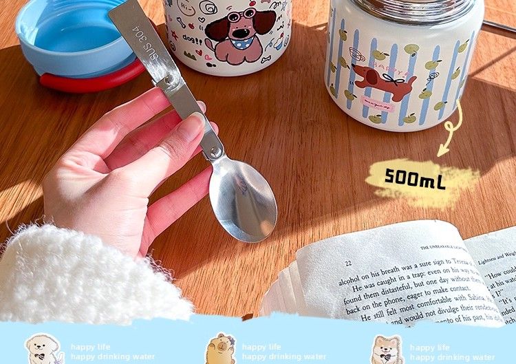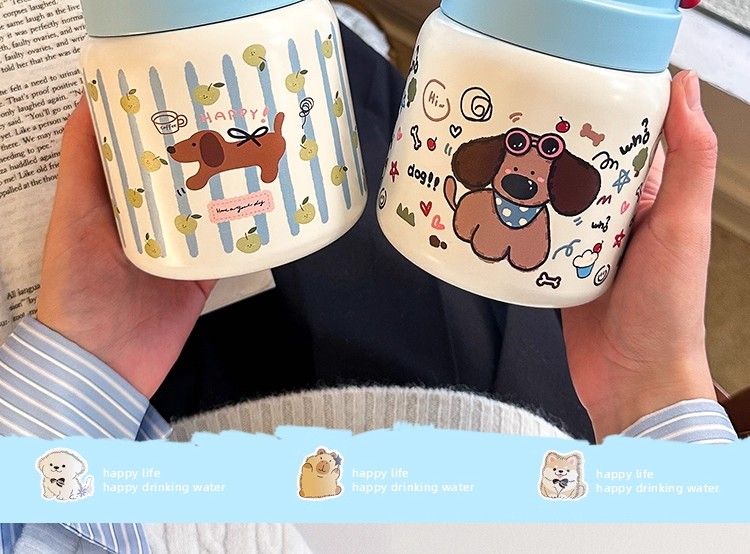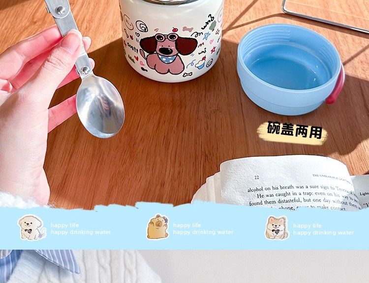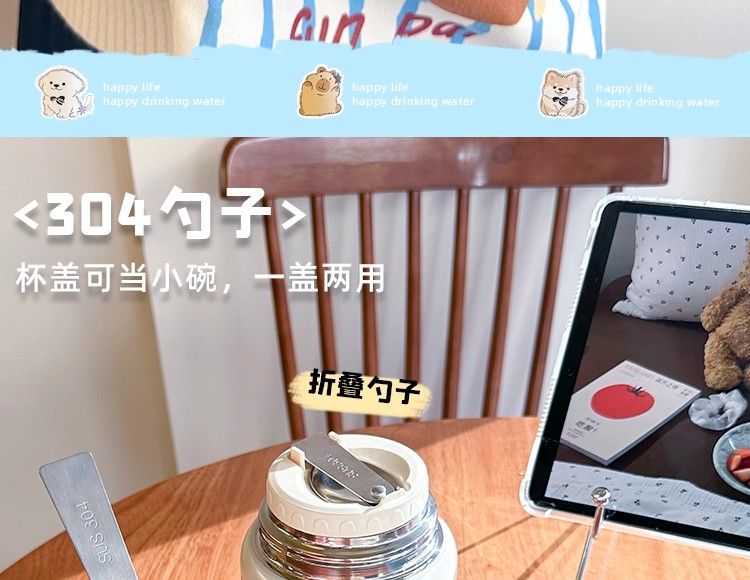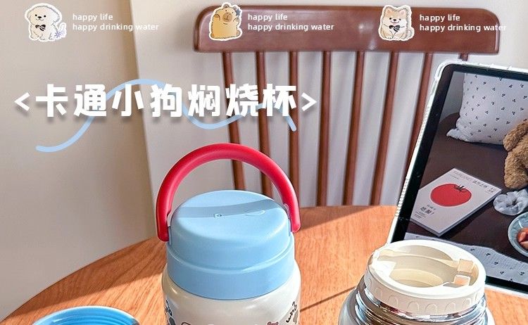 線條小狗燜燒杯小容量燕窩銀耳羹燜燒罐帶勺子保溫杯女生