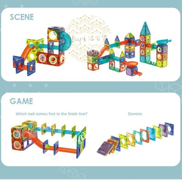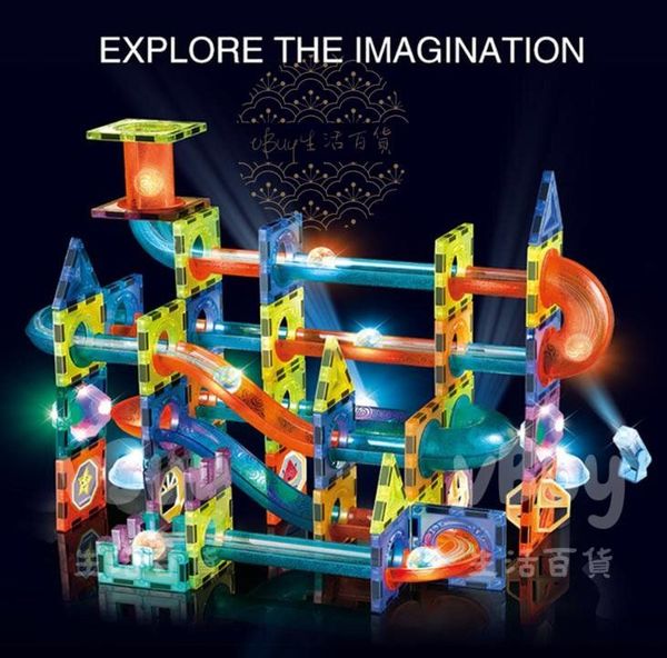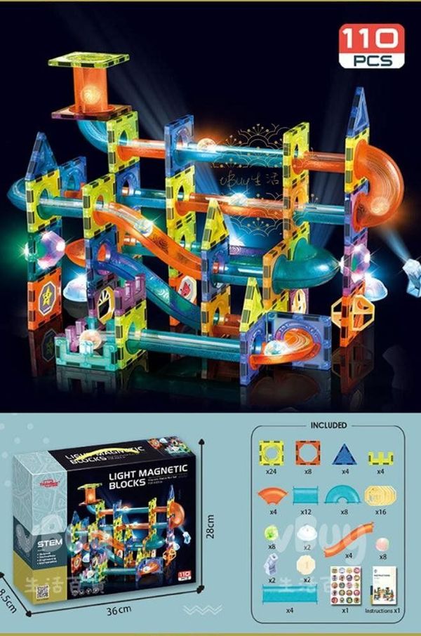 STEM 小製作-DIY創意發光磁石積木片玩具套裝 發光滾球軌道管道積木110塊・發光管道磁片積木・磁力片玩具|幼兒園寶寶早教百變磁力片套裝玩具︱STEM 益智建構玩具