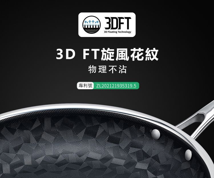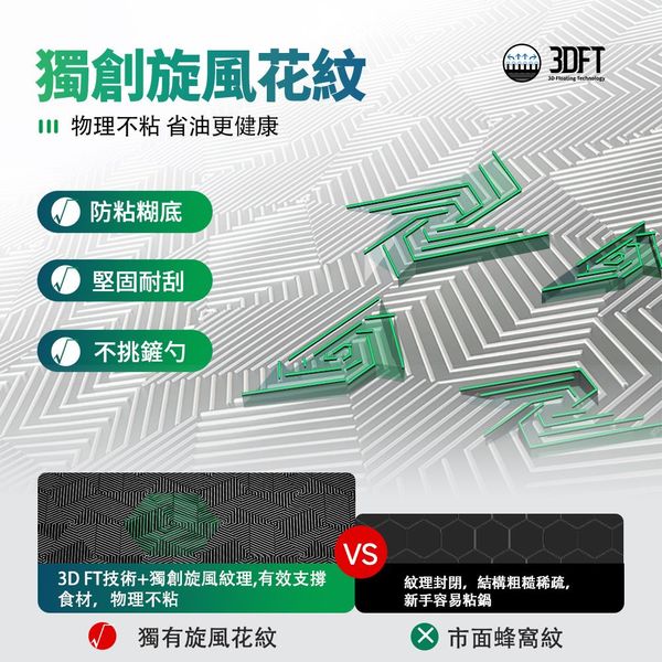 ・獨創旋風菱形花紋,開放油路不沾不糊