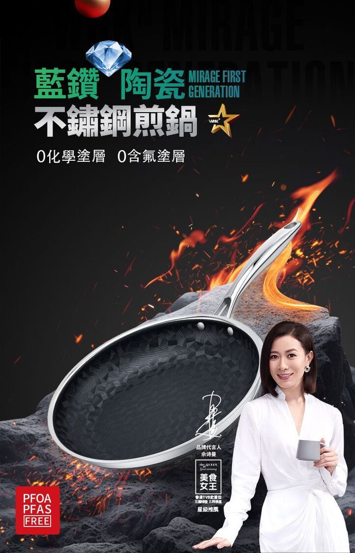 幻影世代3D藍鑽陶瓷304不鏽鋼旋風單柄煎鍋