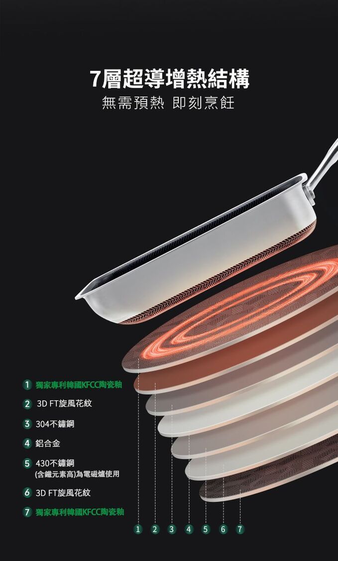 ・7層超導熱結構,導熱迅速,受熱均勻