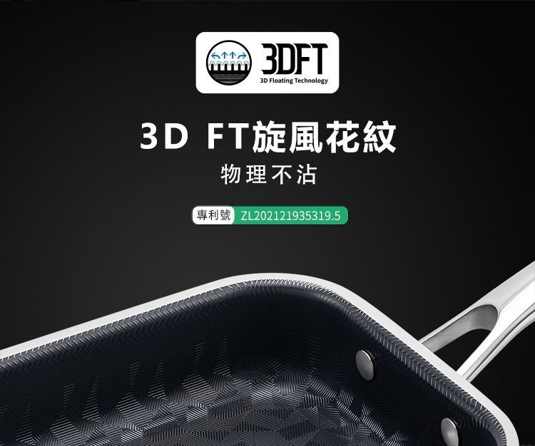 ・獨創旋風菱形花紋,開放油路不沾不糊