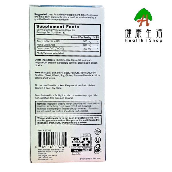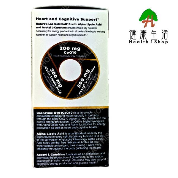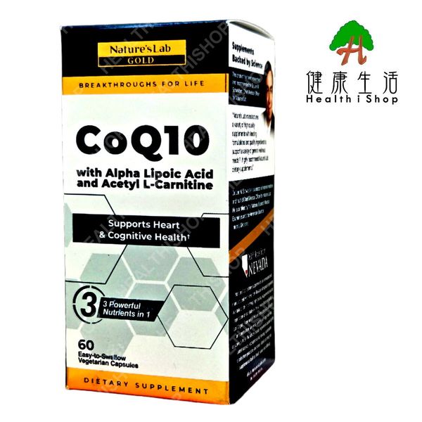 Nature's Lab - 輔酶Q10 + 硫辛酸 + 乙醯左旋肉鹼 60粒素食膠囊 【平行進口】
