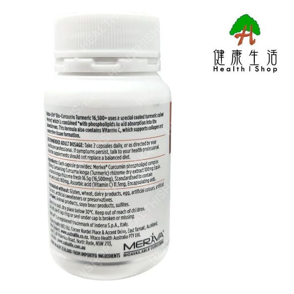 Nutra-Life 薑黃素探用專利配方Meriva 的特殊塗層薑黃,將它與磷脂結合,可更容易被吸收。配方中還含有維生素 C,可促進進膠原蛋白和結締組織的形成。