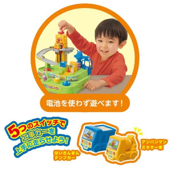 包含兩種工程車輛:麵包超人攪拌車和白金超人翻斗車。
