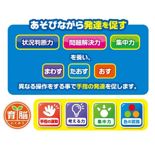 遊戲可以培養情境判斷能力、解決問題的能力和專注力,並透過旋轉、敲擊和推動等不同的操作促進手部和手指的發展。