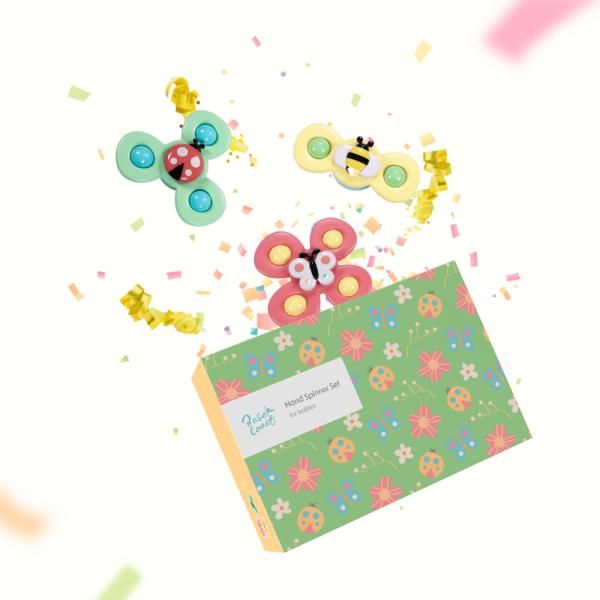 【利用シーン】6カ月 1歳 2歳 赤ちゃん ハンドスピナー 誕生日 プレゼントギフトBOX 送料無料 ゆうパックでお届けします。※吸盤はしっかり着きますが、落下しても赤ちゃんに当たらない場所につけるようにご注意してください。