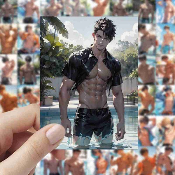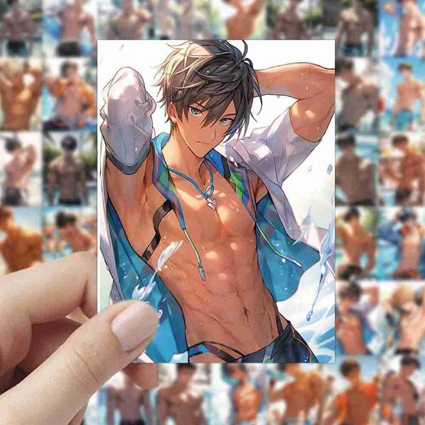 日本-貼紙包:帥氣腹肌游泳男。貼紙包。人物、男孩、帥哥、貼紙。拼貼素材、計畫表裝飾素材、人物貼紙包。適用於智慧型手機和筆記型電腦。