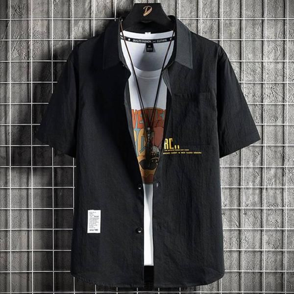 男士短袖開領襯衫 男士短袖夏季開領襯衫 正裝襯衫 休閒通勤 男裝 上衣 男士時尚 時尚 顯瘦