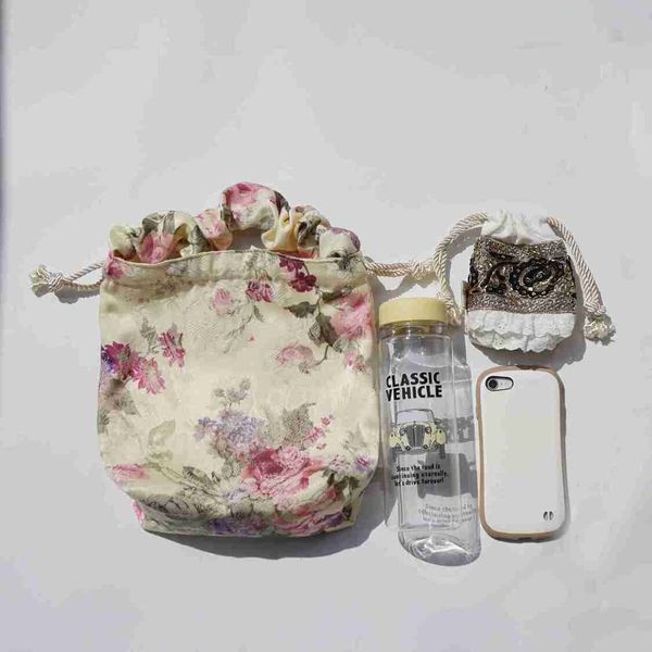 日本-玫瑰盛開帶手柄束口袋,束口袋單肩包,禮物,禮品,用於婚禮,和服,袴