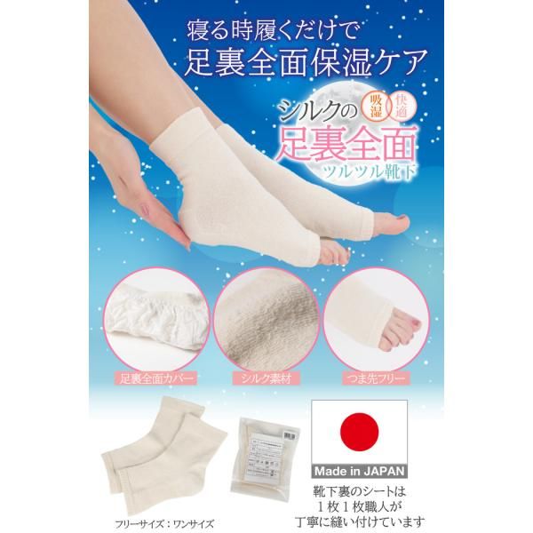 帶來嬰兒般的柔軟觸感。一年四季都穿著舒適。日本製造。產品名稱:類型:絲綢睡眠襪,全平滑足底,足跟護理,足底護理,保濕,便捷產品。適合:足跟襪,足跟護理襪,足跟支撐襪,襪子,保濕,絲綢,推薦用於睡眠,時尚,夏季。輕薄的冬季腳跟平滑襪,可去除老繭、足底並提供保濕支撐。非常適合夜間使用。無需刮擦。是送給女性、男性和老年人的絕佳禮物。非常適合母親節、聖誕節或生日。顏色:米白色。尺寸:均碼。材質:絲綢、尼龍、聚酯纖維、聚氨酯。