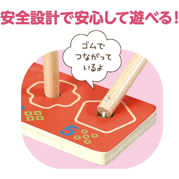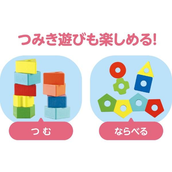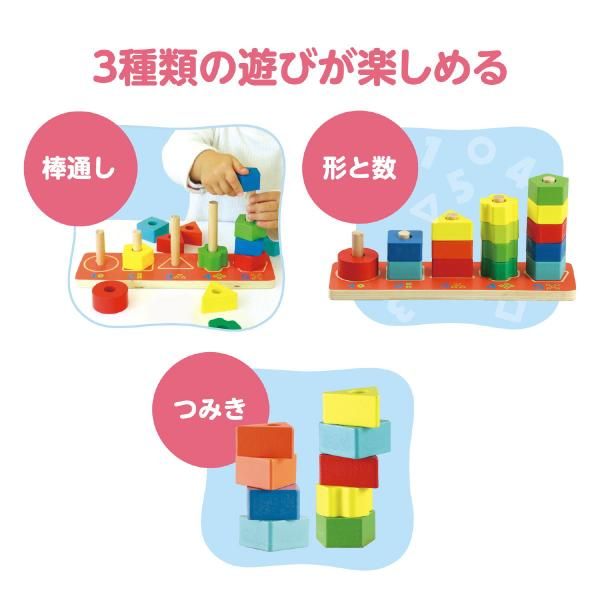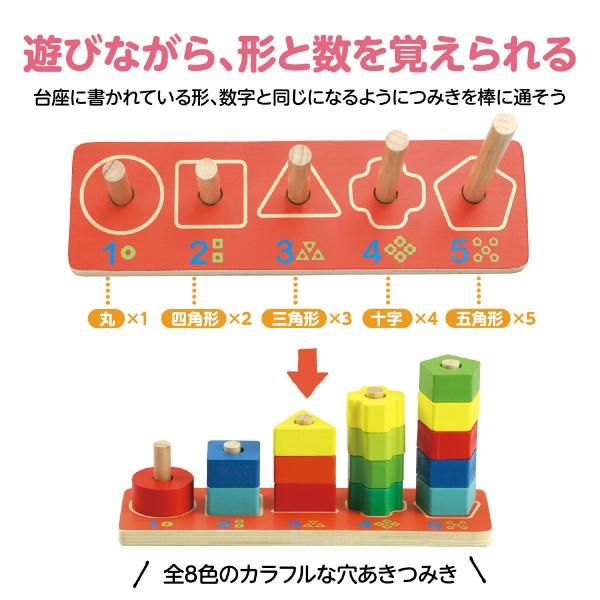時學習形狀和數字。 8 種顏色的彩色積木,每個積木上都有孔洞。積木和底座用橡膠連接以確保安全。