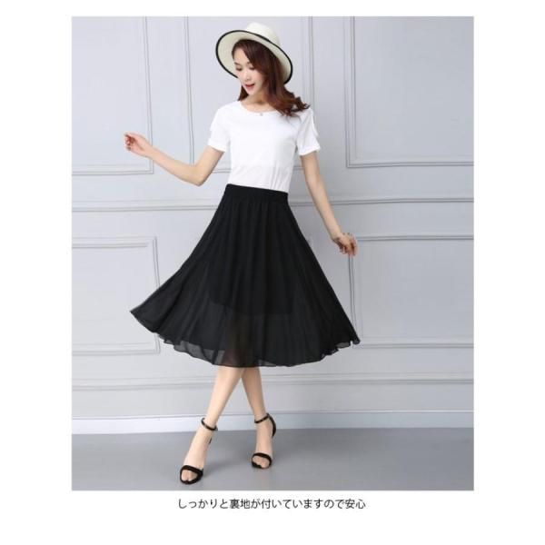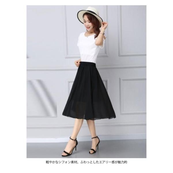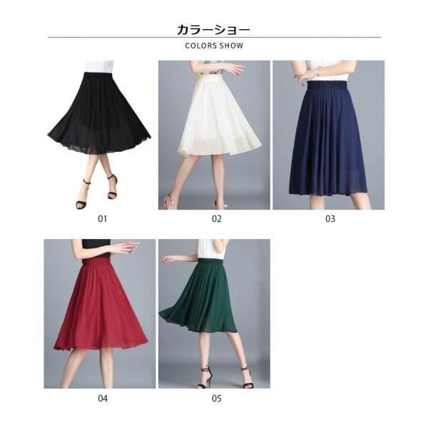 日本から輸入—女士半身裙、雪紡裙、中長裙、及膝裙、薄款、有襯裡、鬆緊腰、喇叭裙、時尚、漂亮、女性化