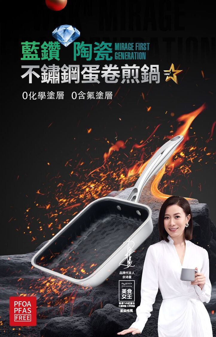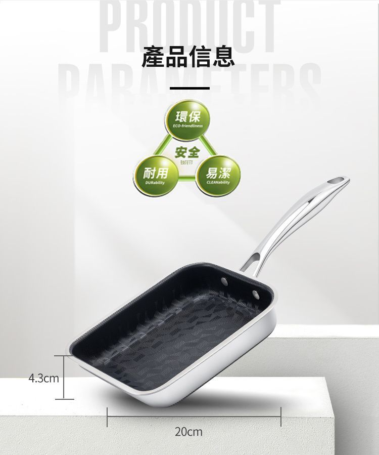 藍鑽陶瓷304不鏽鋼旋風花紋蛋卷煎鍋 (不含蓋)