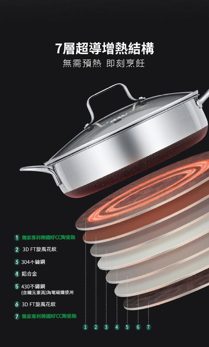 ・7層超導熱結構,導熱迅速,受熱均勻
