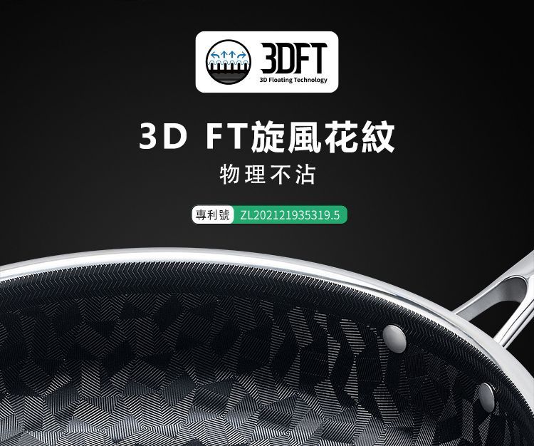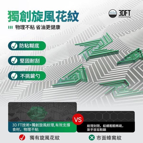 ・獨創旋風菱形花紋,開放油路不沾不糊