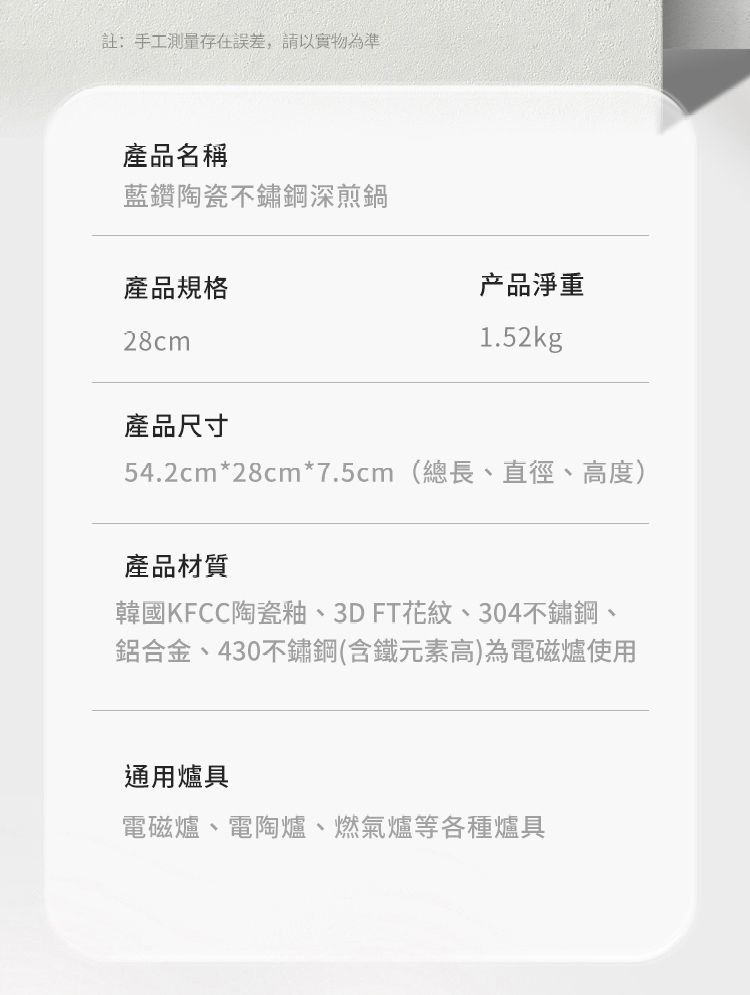 ・適用於各種爐具, 包括電磁爐、電陶爐、明火爐等等爐具