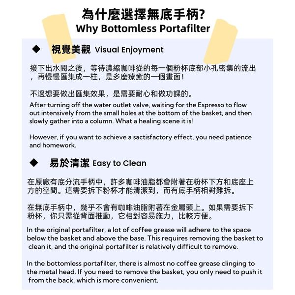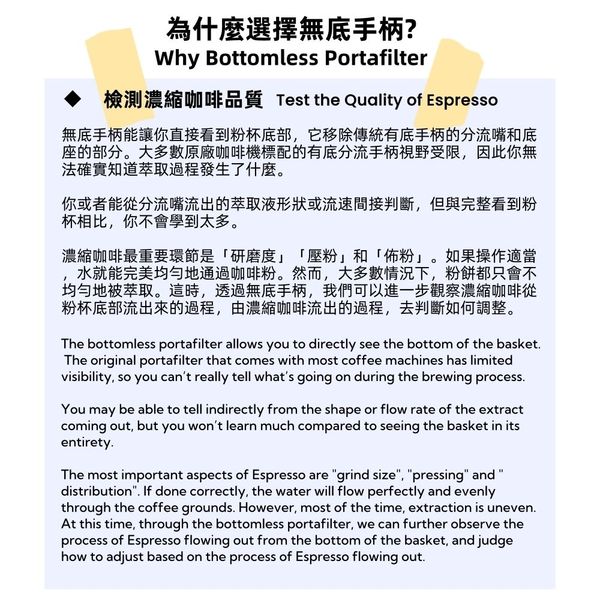 請留意,無底手柄相比原裝有底手柄,需要調整多種因素才可以得出令人滿意的出品,詳情見商品說明圖片。所以對於追求效率,以及對無底手柄沒有一定了解的用家,請謹慎購買。
