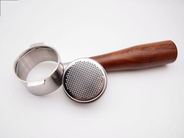 CittaLalage-酸枝木不鏽鋼咖啡無底手柄51mm雙耳適用Delonghi德龍系列咖啡機(包含一個粉碗14g-18g)