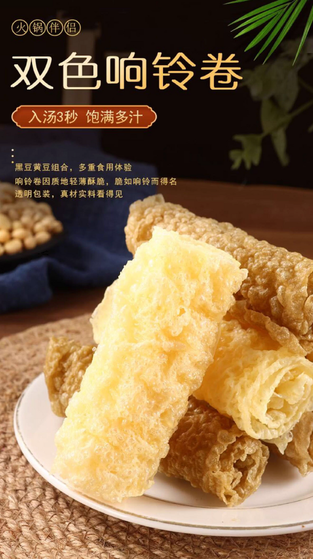 豆歡笑-黑豆黃豆雙拼響鈴卷 120g 打邊爐 火鍋 [平行進口]