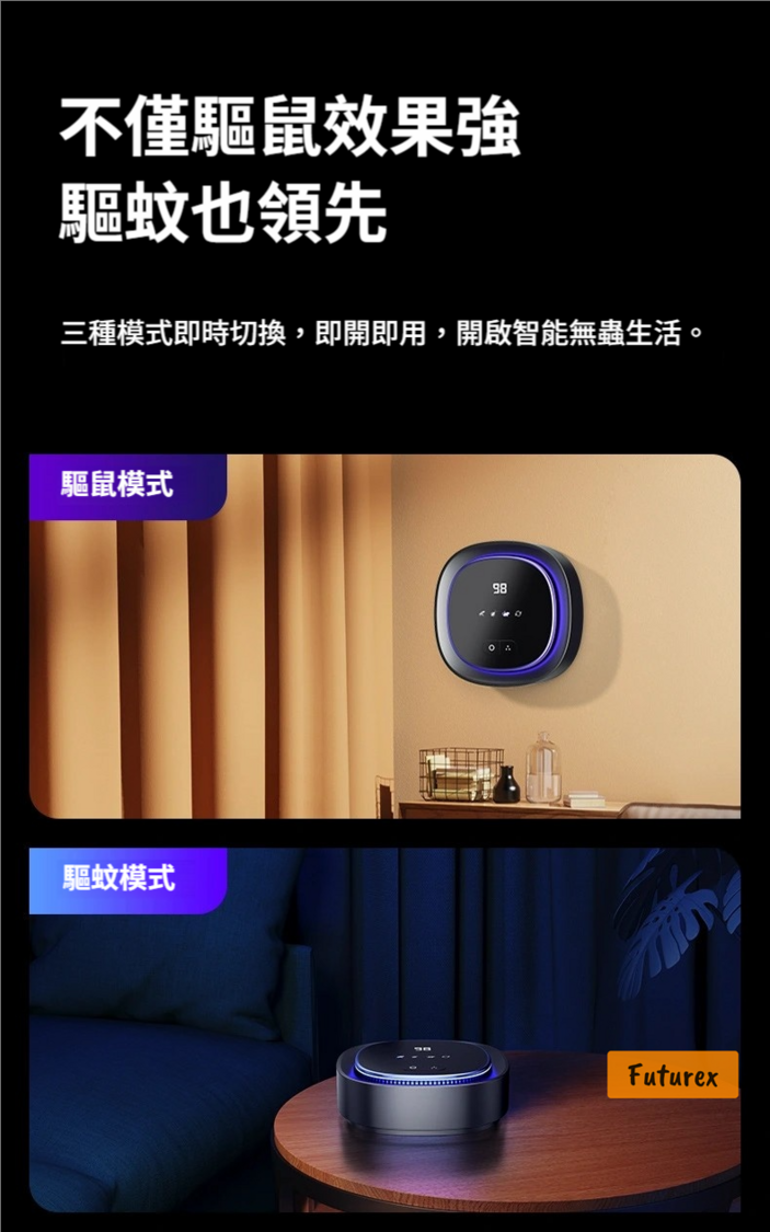 創新超聲波同光波雙重驅鼠模式,直擊老鼠神經,驅蚊效果一樣掂!