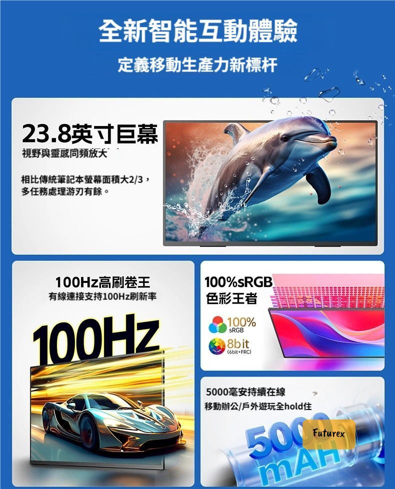 - 100Hz高刷新率(有線連接,無線60Hz),打機、睇波、多工處理順暢無殘影。