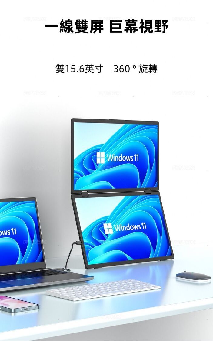 Windows 只有通過全功能 Type-C 接口可以實現一線雙顯,支援同屏或擴展模式