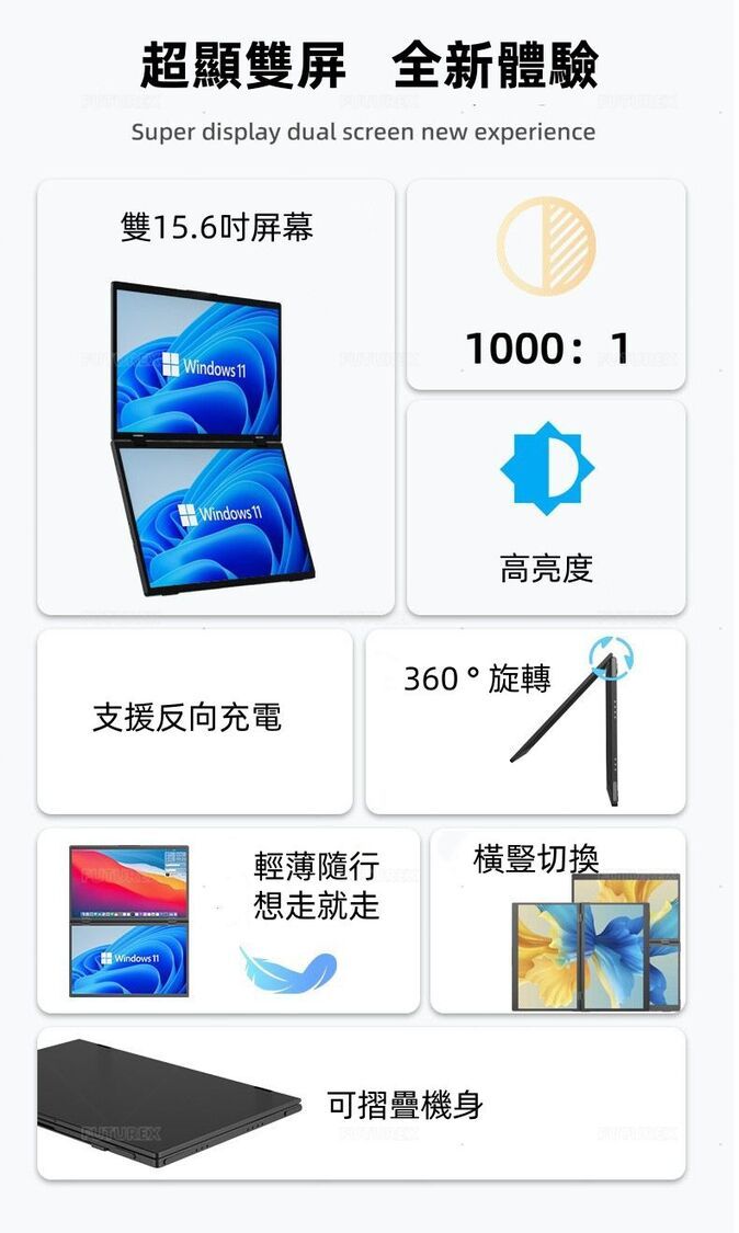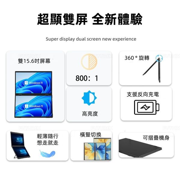 日本暢銷-EIMIO - 雙15.6英寸觸控摺疊便攜顯示屏 | 便攜顯示器 | 即插即用 | 適用 Mac/Wins/Android/Switch/PSP/Xbox E10