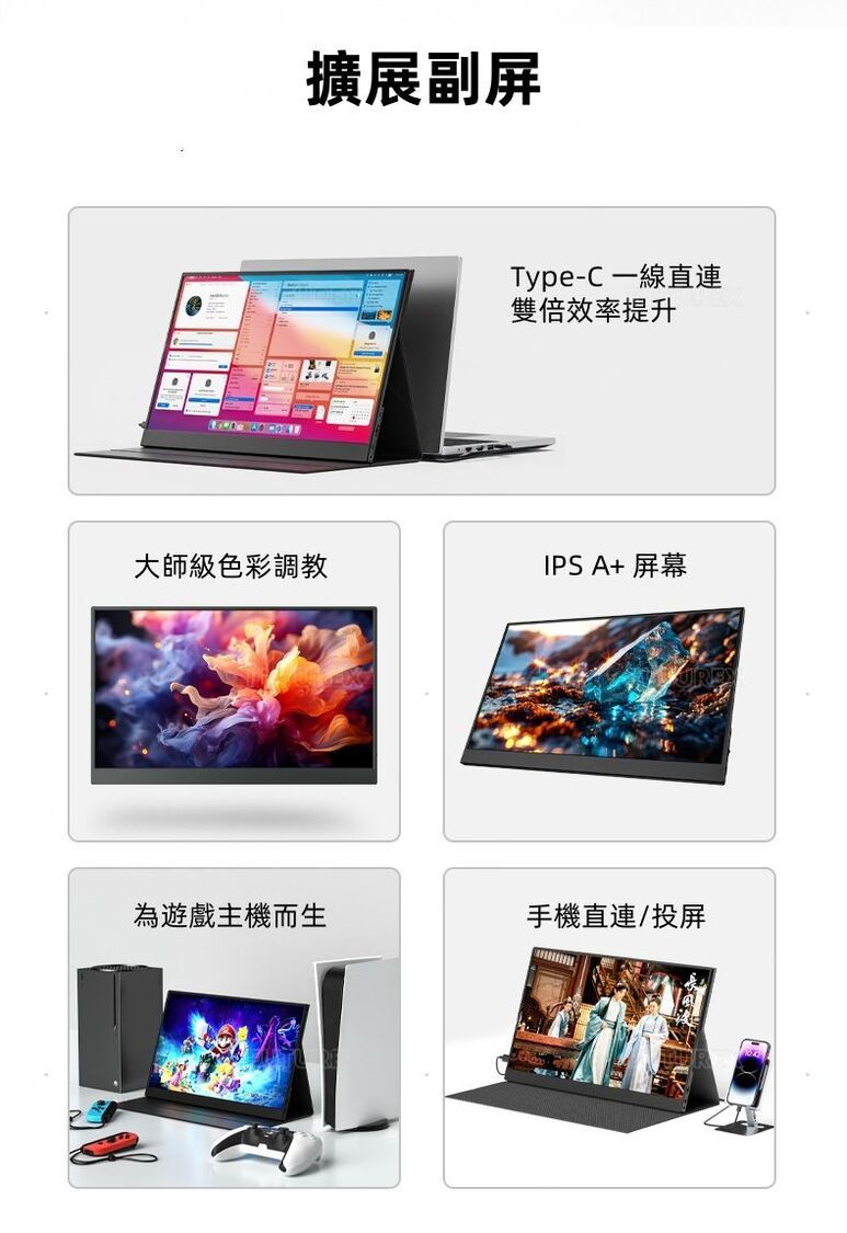 日本暢銷-EIMIO -15.6英寸便攜顯示屏 | 高清1080P 便攜顯示器 | 即插即用 E16