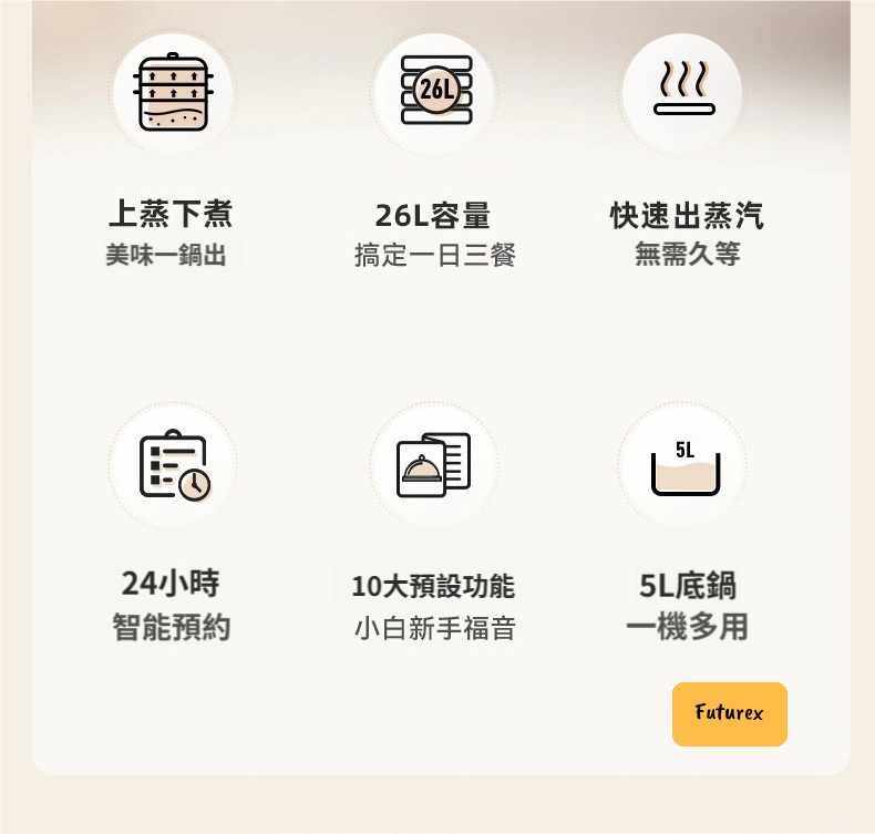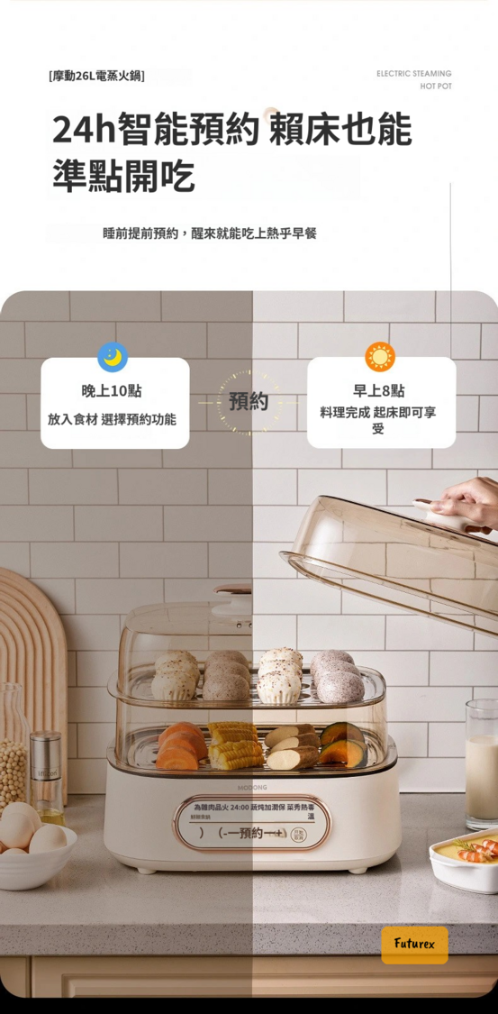 - 24小時預約功能:瞓前set定時間,朝早起身有熱辣早餐