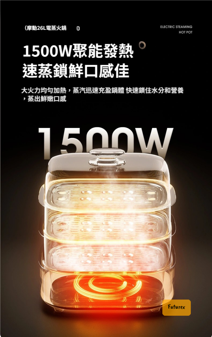- 1500W強勁火力:秒出蒸汽,鎖住食材鮮味唔走樣