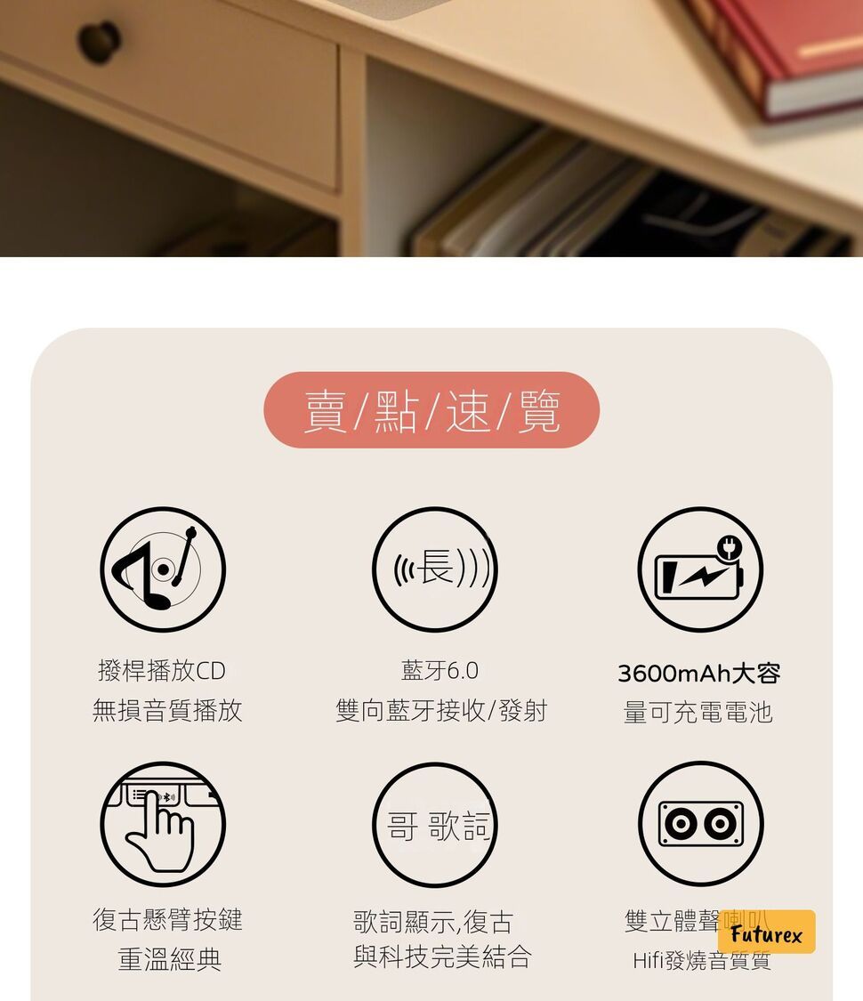 日本暢銷-復古CD播放機|雙向藍牙6.0|FM收音機|歌詞顯示|Hi-Fi音質