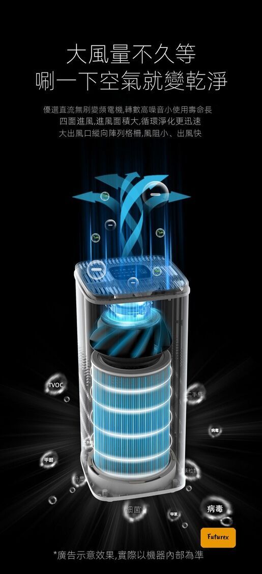 - 360°全方位淨化:有效去除粉塵、寵物毛髮、PM2.5同有害氣體