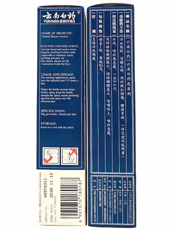雲南白藥-雲南白藥氣霧劑外用趺打噴霧85克【香港行貨】#跌打損傷、瘀血腫痛、肌肉酸痛 039