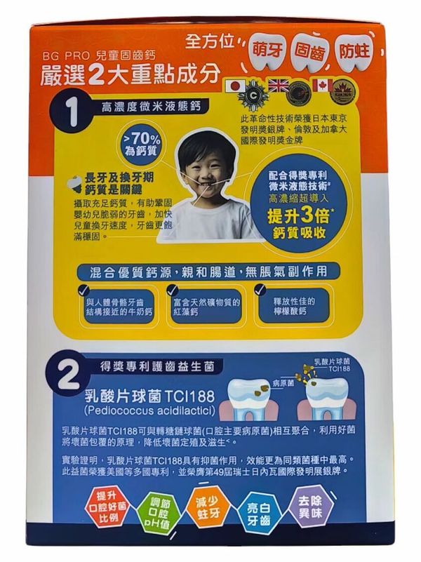 博健科研BG Pro博健專研兒童固齒鈣 30包 193b