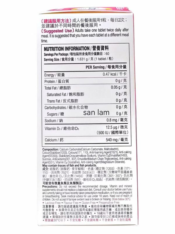 [原裝正貨]佳存成人鈣片60粒#成人補鈣#維他命D#骨骼健康#預防骨質疏鬆 389