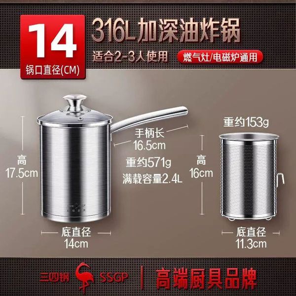 油炸锅316不锈钢家用小炸锅带滤网瓦斯炸壶加深省油专用炸串深锅;;颜色分类:316油炸锅【加高加厚】